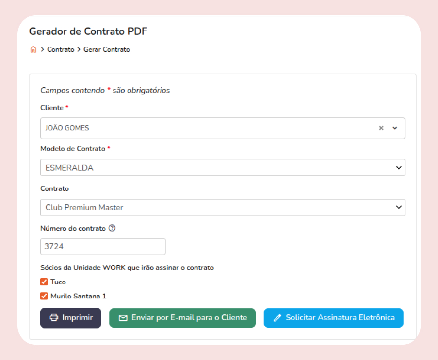 A gestão de contratos do Conexa vai muito além do básico. O sistema gera uma minuta com cláusulas de prestação de serviços, que pode ser revisada e enviada para assinatura eletrônica em poucos cliques. Tudo acontece dentro do próprio Conexa, garantindo agilidade, segurança e um processo totalmente digital (via integração com parceiro D4Sign)